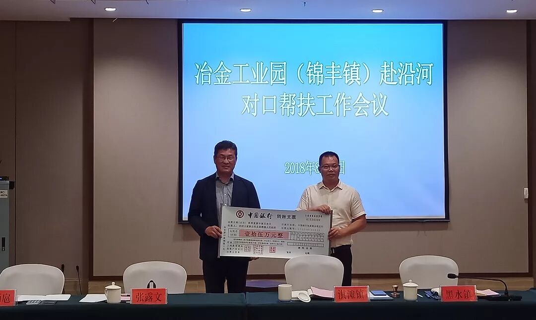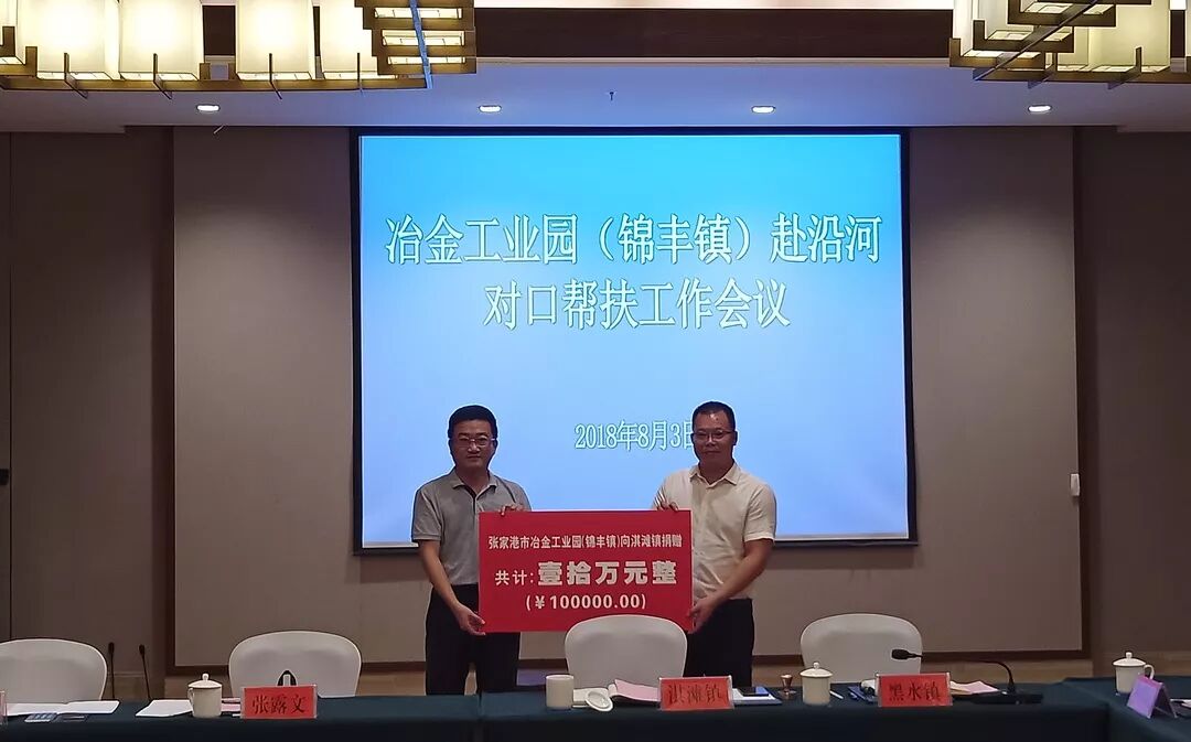 冶金工业园(锦丰镇)向和平街道、淇滩镇、黑水镇各捐赠10万元。浦项公司向淇滩镇捐赠15万元(定向购买学校设施)。